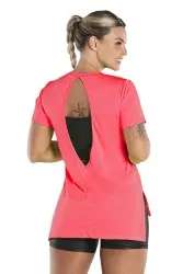 Camiseta fitness de tecido super leve e esportivo, permitindo transpiração. As costas com abertura oval trazem um charme extra e refrescante para o look. A frente é lisa com pequenas fendas nas laterais, está é uma peça versátil para qualquer clima, sendo essencial no seu guarda-roupa.
