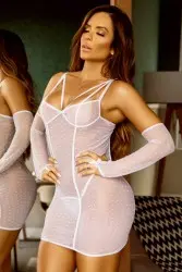 Características: Esta peça é produzida com tecidos de excelente qualidade, alto conforto e toda confeccionada em linda renda delicada. Contém calcinha regulável na lateral, acompanha luva. Camisola feita em tule de poá. Sem bojo.