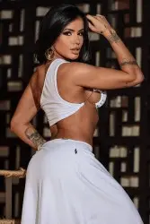 Apresentando nosso conjunto branco chique projetado para fazer uma declaração! Esta dupla dinâmica inclui um top com uma única alça grossa para um toque de estilo único. Combinado com uma saia longa com ampla abertura decorativa que mostra elegantemente sua perna direita, este conjunto é o epítome de sofisticação e ousadia.