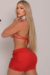 Conjunto composto por top com aplicação de pedrarias e alças finas, acompanhado de saia curta em tule com modelagem justa que valoriza as curvas. Modelo moderno e ousado, disponível nas cores preto, vermelho e branco.
