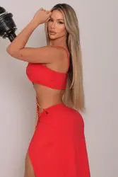 Esse combina sensualidade e sofisticação em um look único. O top com decote drapeado e detalhe dourado realça o colo, enquanto a saia longa com recorte traseiro e franzido valoriza as curvas e alonga a silhueta. Perfeito para eventos e ocasiões especiais, entrega caimento impecável e presença marcante.