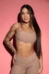 Conjuntinho fitness brocado em tom de nude composto por top de alças finas no ombro e uma tira fina também nas costas, conferindo mais charme ao look e frescor com as costas livres. A legging é de cós alto e COM EMPINA BUMBUM, que ressalta as curvas do corpo, além de costuras desenhadas que dão mais graça ao look.