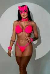 Conjunto de sutiã e calcinha em formato de biquini mas com tecido felpudo, revestido por uma camada sofisticada e macia de penugem que deixa impressão sensual e ousada.