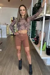 Características: Procurando um top moderno que seja confortável e chique? Não procure mais do que nosso cropped de manga longa bege totalmente estiloso! Apresentando um detalhe exclusivo de uma estampa totalmente moderna em preto, esta blusa é a adição perfeita para qualquer guarda-roupa moderno.