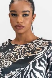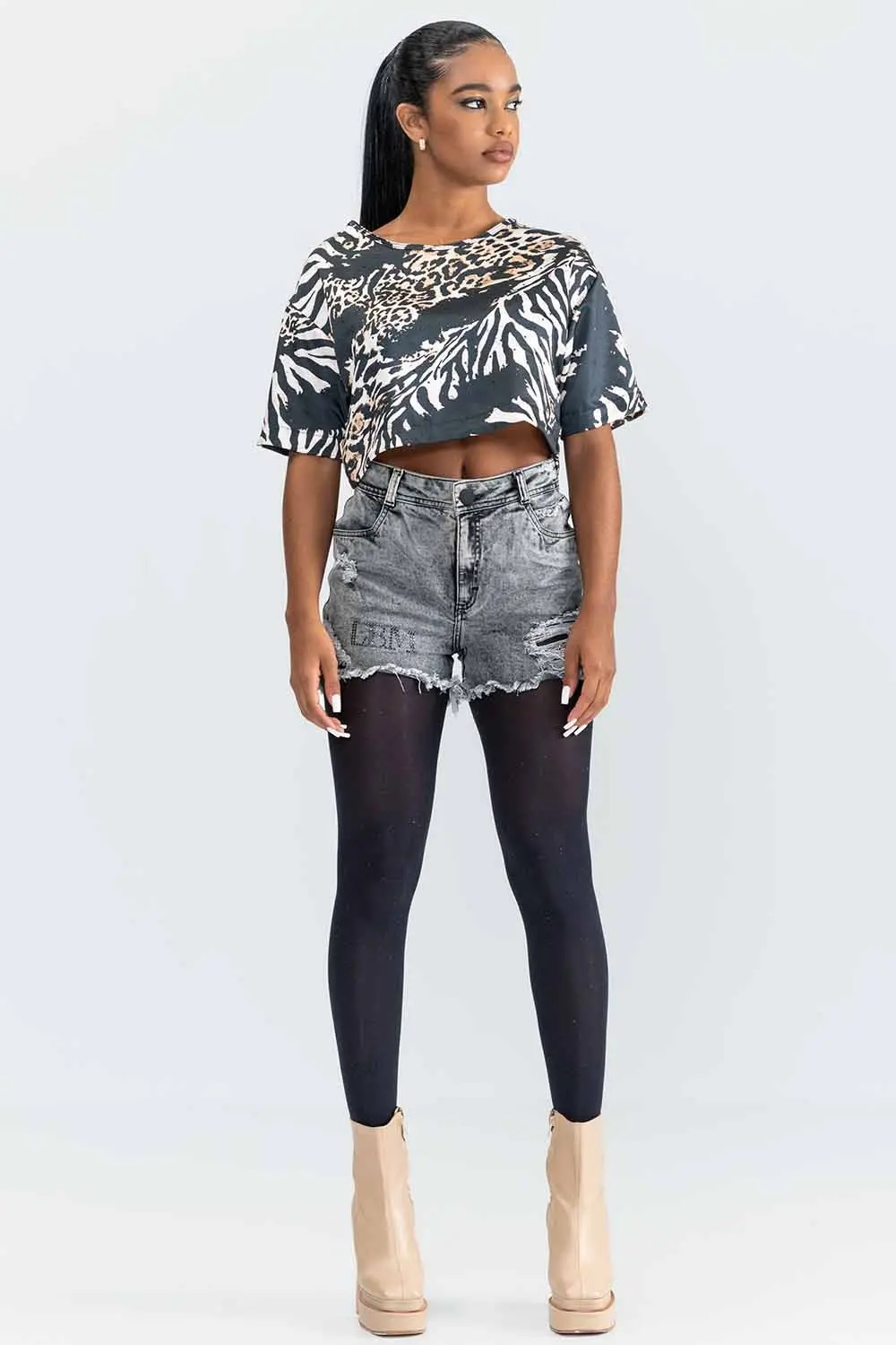 Descrição: Cropped estampado que proporciona mais conforto e liberdade de movimento para os braços. Além de um tecido leve e confortável, possui pequenas strass pretas em todo busto, dando um toque de estilo e modernidade para a peça.