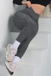 Legging cinza em tecido texturizado com cós anatômico e modelagem que valoriza as curvas. Possui detalhes em listras que contornam o corpo, criando um visual esportivo e moderno. Ideal para treinos com estilo e alta performance.