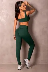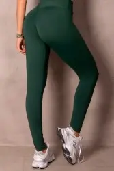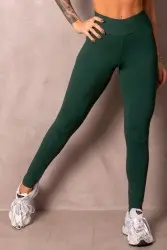 Legging verde musgo com cintura alta e tecido compressivo que modela o corpo com conforto. Possui empina bumbum que valoriza a silhueta, ideal para treinos ou uso casual. Combine com tênis e tops para um visual moderno e versátil.
