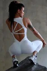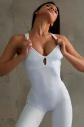 Este macacão de cor Branco versátil é simplesmente irresistível! Sua tonalidade suave evoca uma sensação de frescor e vitalidade, combinando perfeitamente com a energia radiante dos seus treinos. Seu design decotado nas costas é um verdadeiro encanto, revelando uma pitada de ousadia com sutileza e classe.