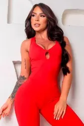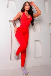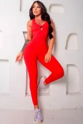 Este macacão de cor vermelha é simplesmente irresistível! Sua tonalidade suave evoca uma sensação de frescor e vitalidade, combinando perfeitamente com a energia radiante dos seus treinos. Seu design decotado nas costas é um verdadeiro encanto, revelando uma pitada de ousadia com sutileza e classe.