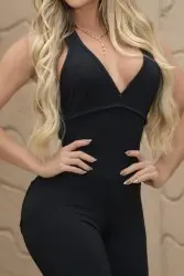 O decote profundo em V, as costas abertas com detalhe de alça e os bolsos traseiros tornam essa peça ainda mais marcante — ideal para destacar sua presença em qualquer ocasião, do casual ao ousado.