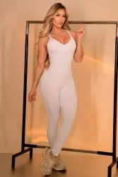Macacão em tecido canelado que oferece ajuste firme e confortável, valorizando as curvas com caimento impecável. Possui costas com alças cruzadas que garantem charme e sustentação, ideal para treinos ou composições casuais modernas.