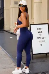 Macacão azul marinho com modelagem justa e acabamento impecável, criado para realçar as curvas com elegância. O recorte nas costas e o caimento anatômico oferecem um visual moderno e sofisticado. Versátil para o dia a dia, treinos ou produções casuais com estilo.