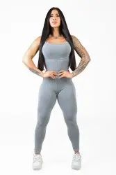 Características: Macacão fitness cinza com detalhes nas laterais, super confortável para se usar no dia a dia e fazer seus treinos com mais estilo!