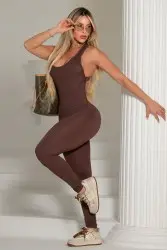 Macacão com modelagem justa, com alças largas, decote arredondado e costas cavadas. Confortável, elegante e ideal para treinos ou looks casuais.