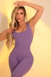 Macacão com modelagem justa, com alças largas, decote arredondado e costas cavadas. Confortável, elegante e ideal para treinos ou looks casuais.