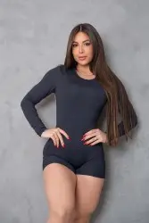 Conquiste seus treinos com nosso macaquinho fitness curto preto de manga longa. Leve e confortável, ele abraça seu corpo perfeitamente, proporcionando liberdade de movimento e estilo durante seus exercícios.