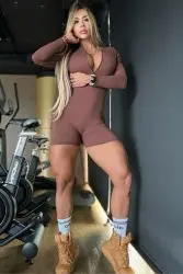 Macacão justo ao corpo com modelagem que valoriza a silhueta. Possui mangas longas, decote em zíper ajustável e detalhe vazado nas costas, que proporciona um visual sofisticado e ousado. O tecido é altamente elástico, com toque macio e compressão moderada, ideal para treinos ou composições urbanas. A tonalidade café rosé traz elegância e versatilidade à peça. Combina conforto, estilo e performance em um só look.