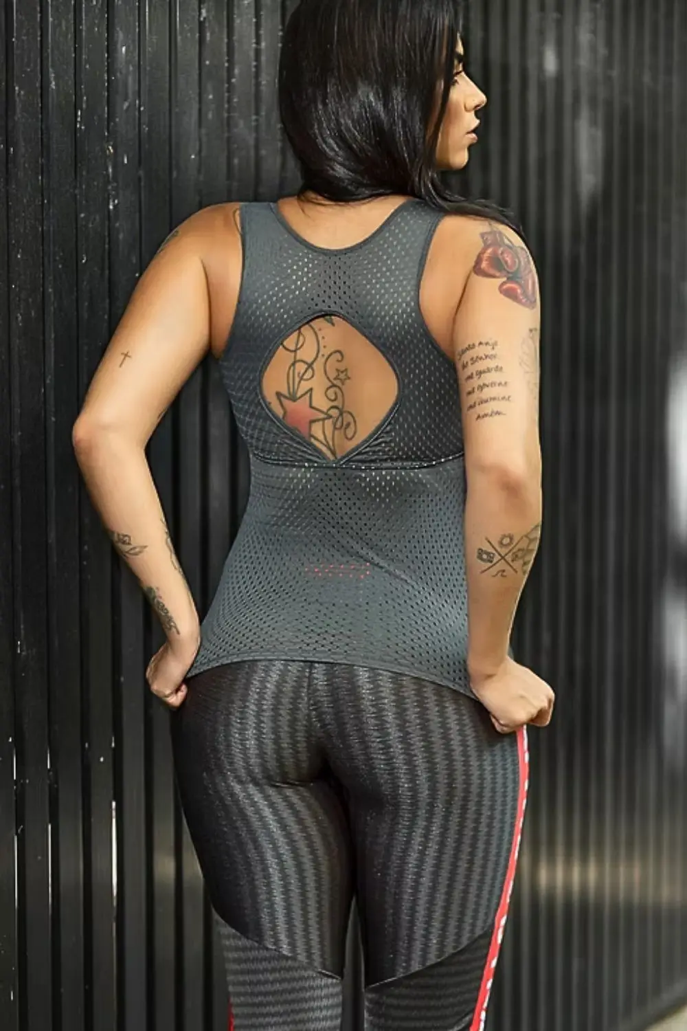 Esta blusa de treino combina um tecido respirável com um design sofisticado. O detalhe vazado nas costas não só adiciona um elemento de estilo único, mas também promove a ventilação durante suas atividades físicas. O corte ajustado valoriza a silhueta, enquanto o material oferece conforto e liberdade de movimento para qualquer tipo de exercício.