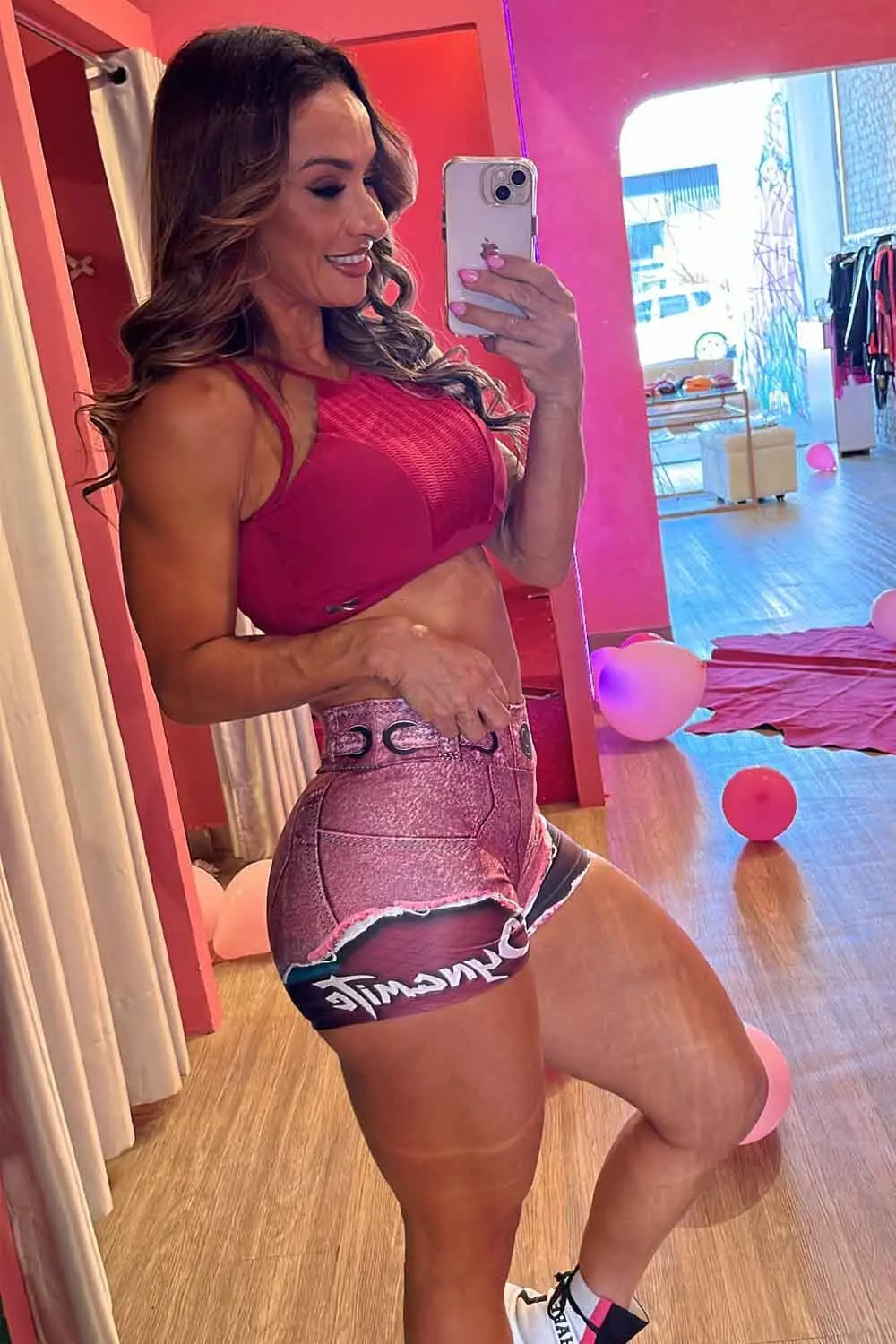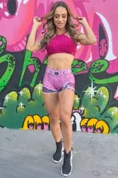 Características: Shorts feito em tecido que imita jeans destroyed. Possui escrito Dyamite na lateral. Modelagem ajustada ao corpo, valorindo as curvas.