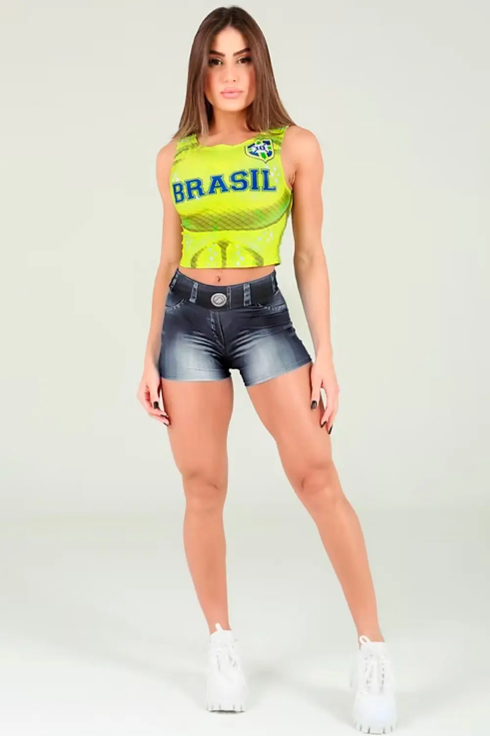 Características: Shorts ajustado com estampa Fake jeans Degradê.