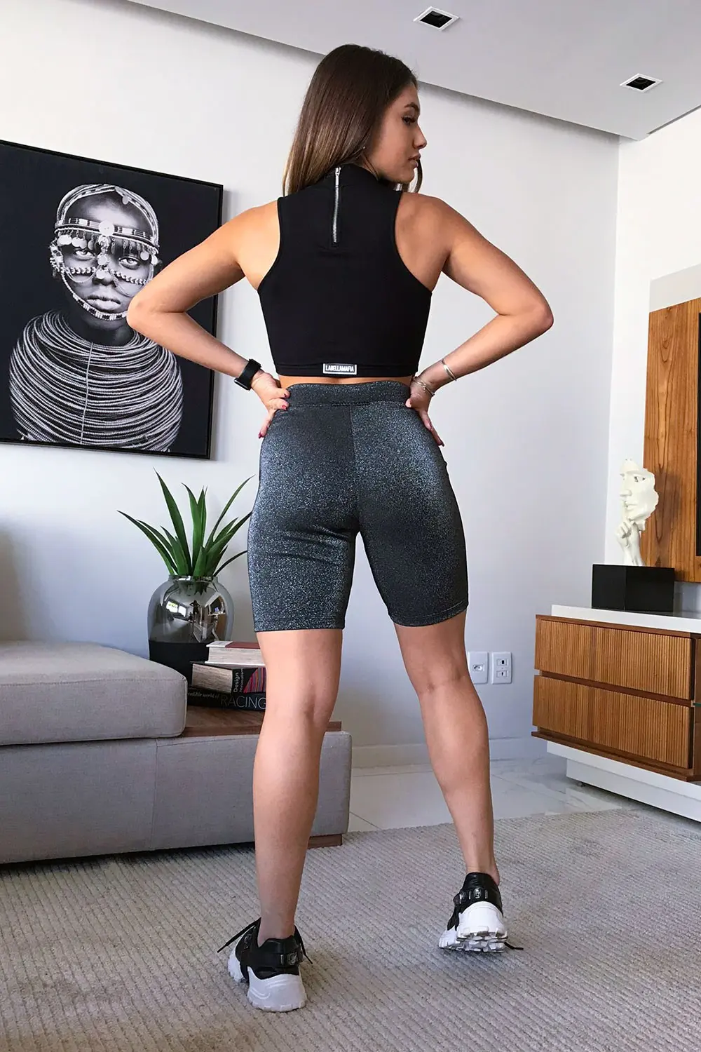 Shorts LabellaMafia. Confeccionado em Lurex, tecido com Brilho.