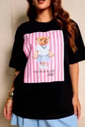 Apresentamos a T-Shirts Teddy Stripes Black, uma peça que combina conforto e estilo divertido.