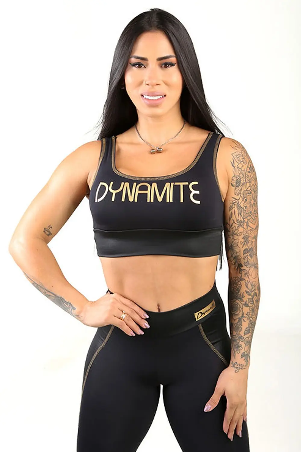 O Top Fitness Ébano Preto Dynamite possui alças largas, oferecendo extremo conforto e estilo. Com a logo "Dynamite" no busto, adiciona um toque de autenticidade. Combine-o com a legging da coleção ou qualquer outra do seu guarda-roupa. Perfeito para proporcionar suporte e estilo durante os treinos, possui forro no busto.