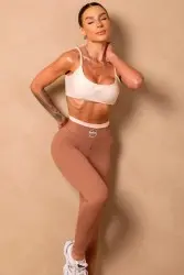 Top bege com decote arredondado e alças finas reguláveis. Confeccionado em tecido liso de alta sustentação, oferece conforto e segurança durante os treinos. Estampa frontal "HIPKINI" aplicada no centro. Design versátil e moderno para compor looks fitness com estilo.