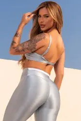 Top fitness com estilo e conforto , com um design moderno em tom de prata proporciona um visual vibrante e sofisticado. Feito com material de alta qualidade, oferece excelente suporte e liberdade de movimento para seus treinos. Seu ajuste perfeito e a modelagem de costas cruzadas e expostas garante conforto e praticidade.