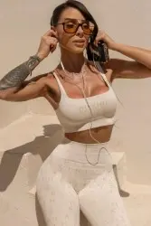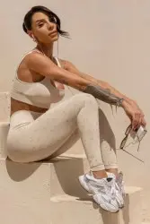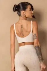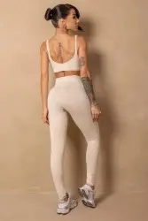 Top bege seamless com modelagem ajustada ao corpo. Possui logo frontal “Hipkini Sports” em relevo, trazendo um toque moderno. Confeccionado em tecido macio e elástico, oferece conforto, sustentação e estilo para treinos ou uso casual.