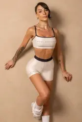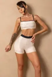 Top creme com alças finas e acabamento em vivo preto, destacando o contraste elegante. Possui estampa frontal “Hipkini Sportswear” e modelagem ajustada que valoriza o corpo. Confeccionado em tecido leve e confortável, oferece sustentação e estilo para treinos ou composições casuais.