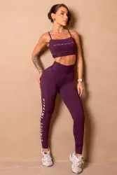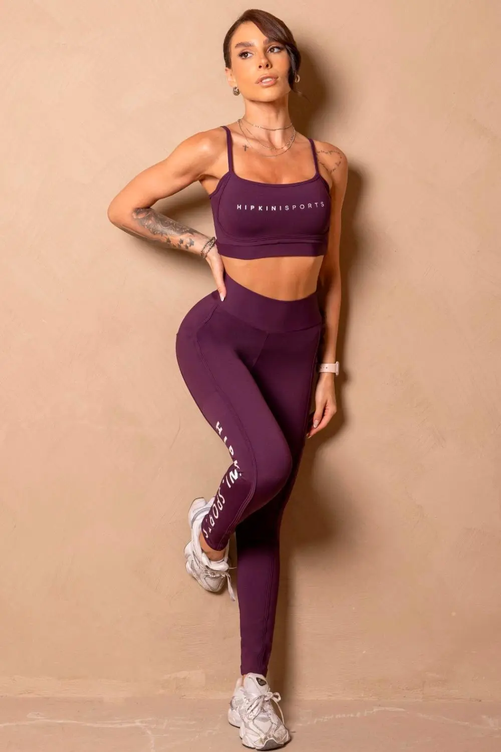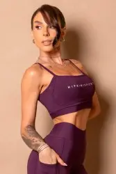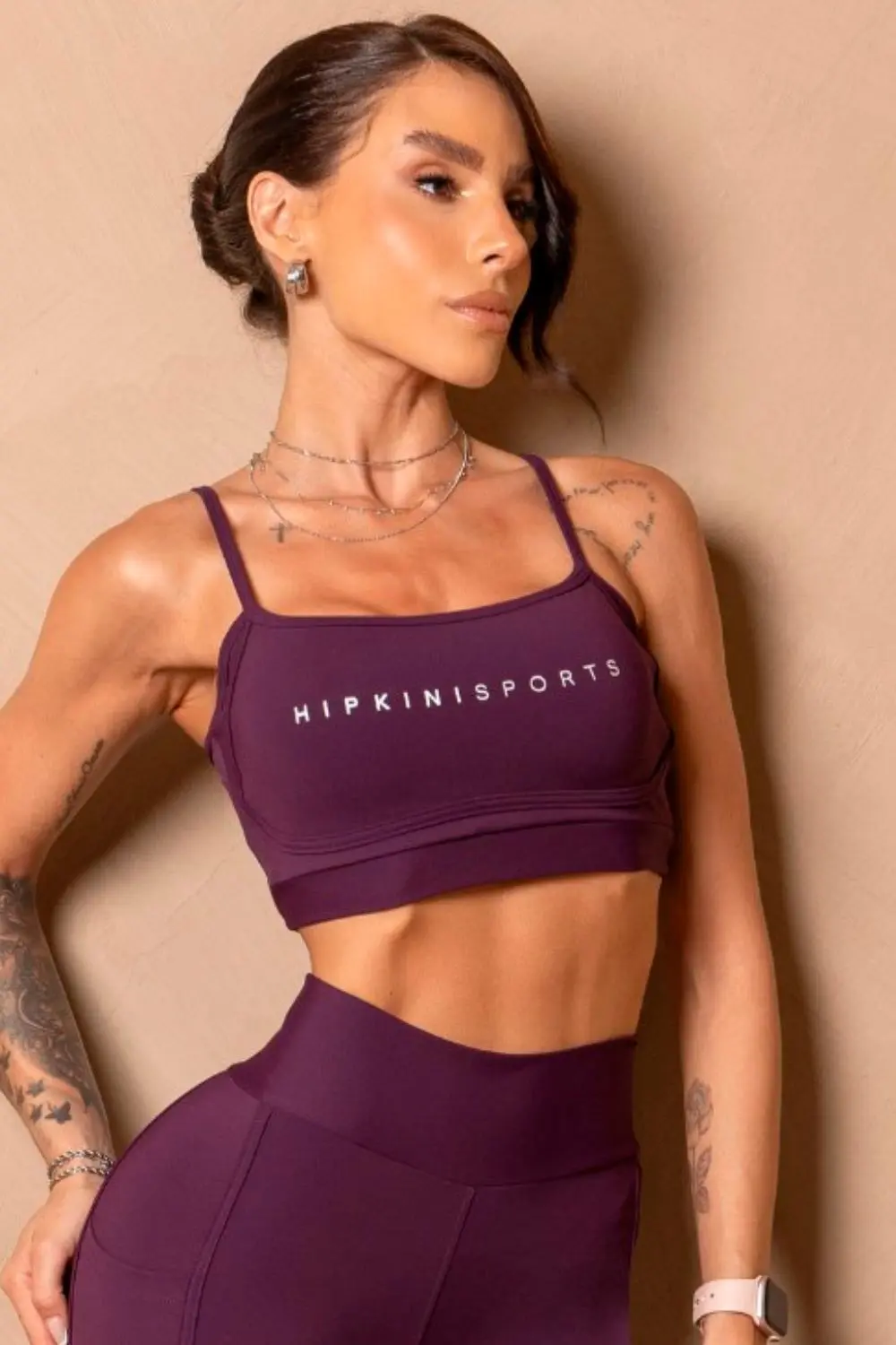 Top fitness roxo com alças finas ajustáveis e modelagem reta que valoriza o busto. Confeccionado em tecido firme e confortável, oferece sustentação leve e toque macio, ideal para treinos ou composições casuais. Detalhe com logo frontal que traz um visual moderno e sofisticado.