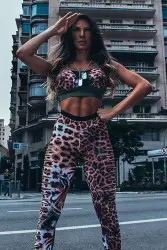 Top com estampa animal, com bojo e super funcional, com alças reguláveis e bolso.