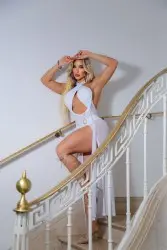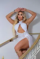 Aposte neste vestido branco arrebatador para transformar qualquer ocasião em um evento memorável! Com um decote cruzado que valoriza o busto e recortes estratégicos na cintura, ele combina sensualidade e sofisticação em um design único. O tecido fluido com brilho sutil acrescenta movimento e glamour, enquanto a fenda lateral com detalhe em metal dá um toque de ousadia e elegância. Seja para festas, eventos de gala ou celebrações especiais, este vestido foi feito para você brilhar e ser inesquecível. Transforme-se na protagonista da noite!