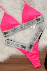 Neon bikini with a structured top and custom elastic. Glider-style thong bottoms, enhancing the silhouette with a sporty, modern touch.
