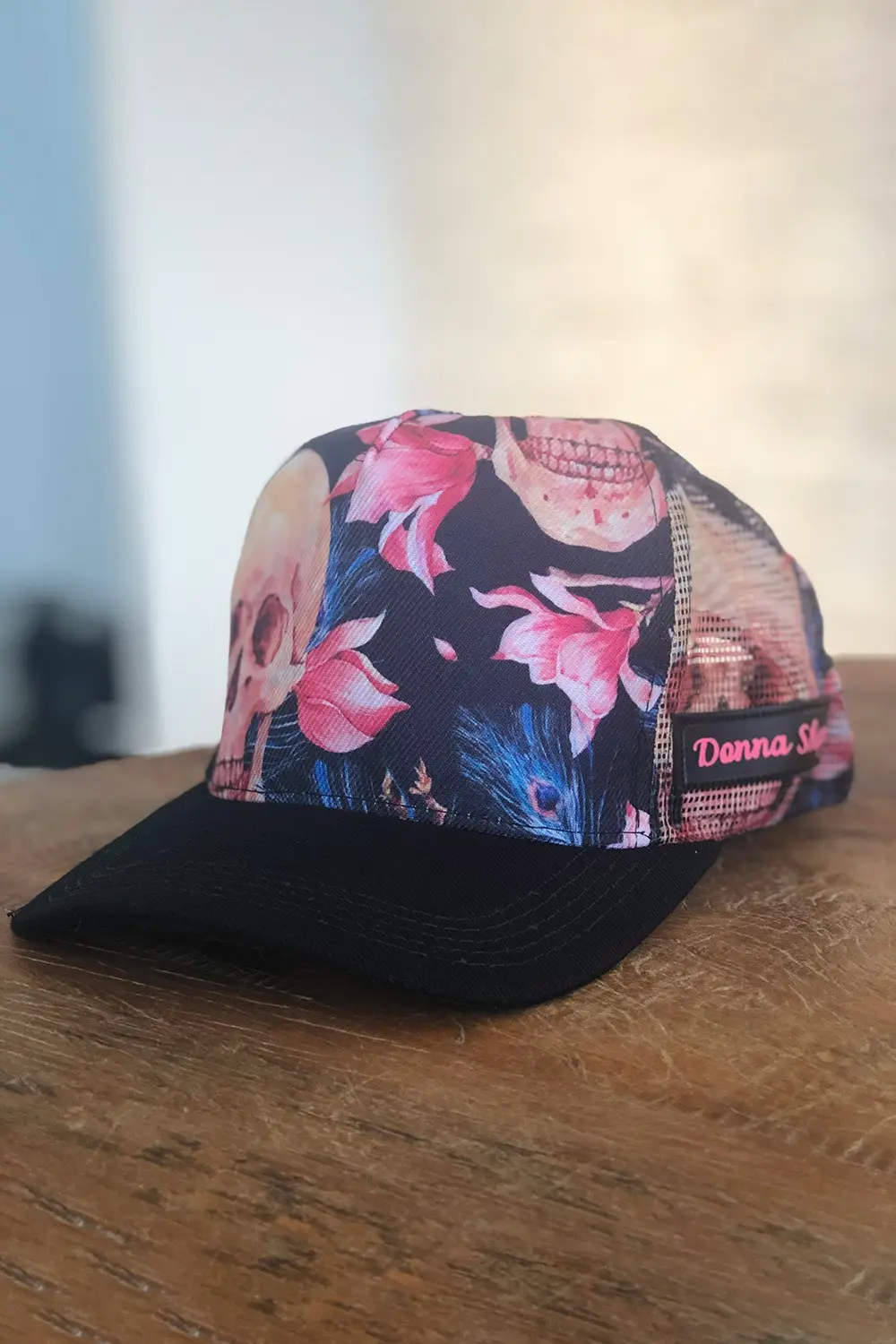 It has a black leather tag on the side with Donna Shape written in raised pink. Snap closure for rear adjustment.