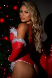 Get into the mood for seduction with this sheer red bodysuit with white feather trim, thin straps, and a fitted design that accentuates your curves. A bold and sophisticated Christmas look, perfect for themed outfits full of attitude and boldness.