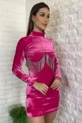 Characteristics: Short dress with long sleeves and long sleeves. with rhinestone details on the bust.