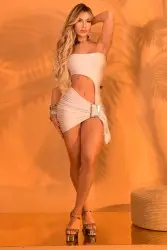 Short dress with a side slit that flatters the figure and a front buckle detail that adds charm to the look. The fitted design enhances curves and guarantees a sophisticated and striking look for the evening.