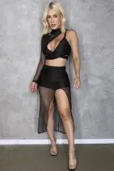 Characteristics: Set consisting of a cropped top and a mesh skirt.