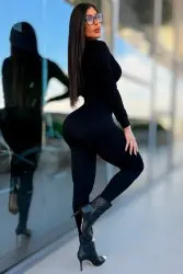 The set features two pieces in black ribbed fabric. The long-sleeved top features a front zipper, a V-neckline, and a cropped length. The pants are high-waisted and form-fitting. The design is contemporary and versatile, ideal for a casual yet elegant look.