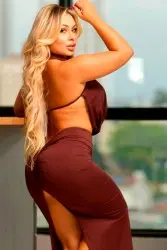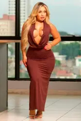 Long set with a fitted silhouette and deep neckline. Top with tie closure at the back and skirt with a slit and draped detail, highlighting curves with elegance and sensuality. Available in red, white, and black.