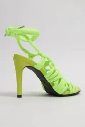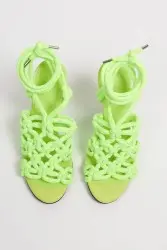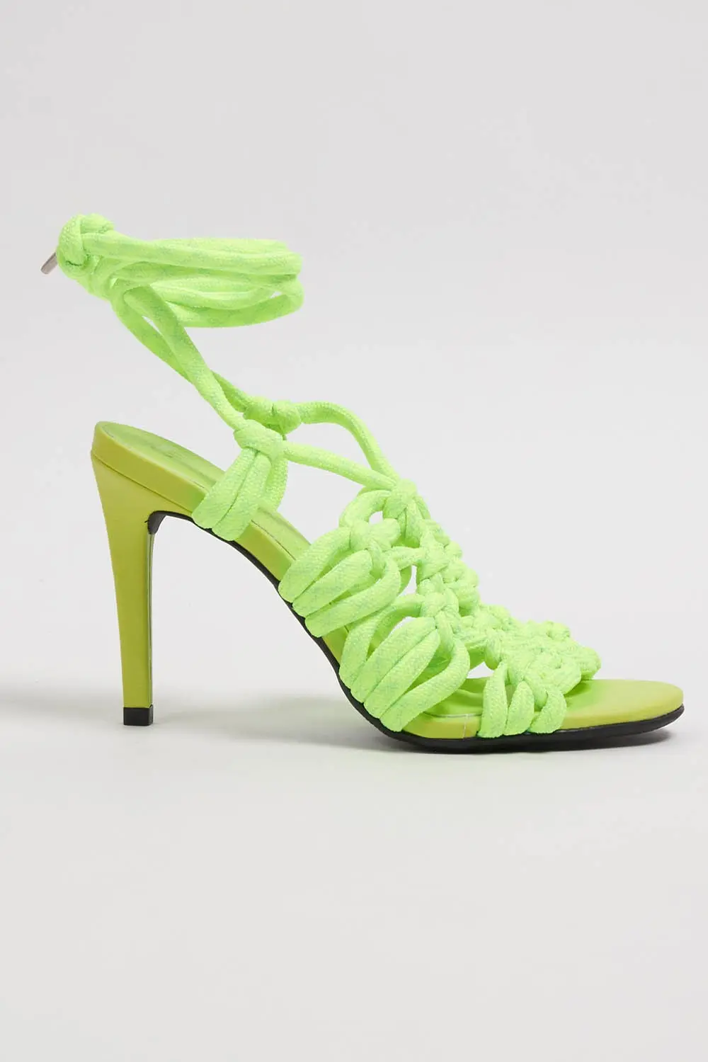 Characteristic: Sandal with square thin heel with 10cm. Made of neon braided rope.