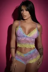 The set is pure charm and seduction! Made entirely of lace, it includes a bralette bra without underwire and padding, and a pair of boxer shorts without adjustable sides. Delicate and sensual, it is the perfect choice for special moments.