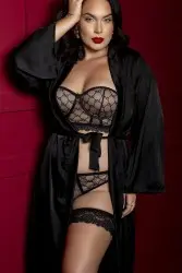 Black lingerie set in tulle and lace design. The kit consists of a strapless bra (with removable straps), panties, garters and extremely delicate and sensual leggings that give a seductive and surprising air to the look.