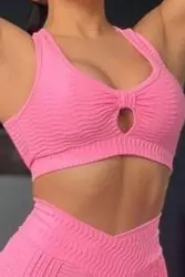 The "Floral Relief" set is the ideal choice for women who want to stand out with encouragement in their workout sessions. Whether it's pilates, yoga, running or the gym, this pink set is a perfect combination of fashion and functionality. Lose yourself in the soft feel of the fabric, embrace the beauty of the embossed detailing, and feel confident and empowered in your every move.