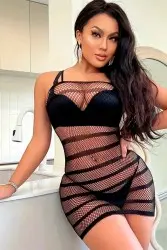Features: This dress is a unique piece that combines elements of lingerie and fashion in an elegant and daring design. Made with the same fabric as pantyhose, it is soft to the touch and fits the body perfectly, enhancing your curves and providing comfort. It features laser-cut details, creating a subtle and sensual look, making this dress perfect for special occasions or a romantic evening.