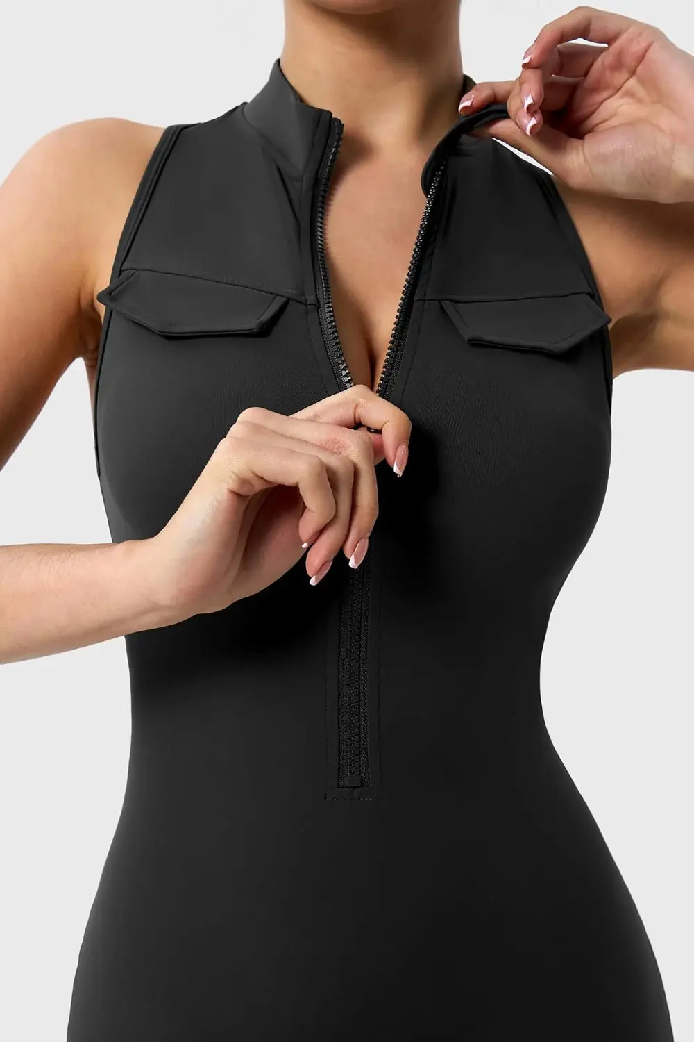Discover the power of versatility with the Donna Pocket Jumpsuit, a piece that combines utilitarian style, comfort, and a whole lot of attitude. With functional pockets on the legs and bust, an adjustable front zipper, and high-compression fabric, it enhances every curve with elegance and practicality.