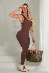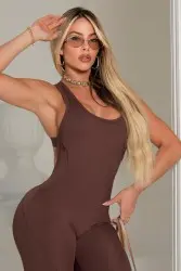 jumpsuit with a fitted fit, wide straps, a rounded neckline, and a low back. Comfortable, stylish, and ideal for workouts or casual looks.
