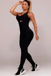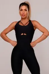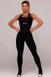 The Roll Black Jumpsuit is a striking piece, made from Hyper Double Mesh to guarantee firm compression, zero transparency, and a soft touch. Its modern design features a subtle opening below the bust with double rolls at the neckline, as well as wide, crossed straps that offer support. The structured cups ensure a better fit, while the ruching at the buttocks creates a discreet push-up effect. Versatile and elegant, it's ideal for working out, going out, or standing out with comfort and personality.